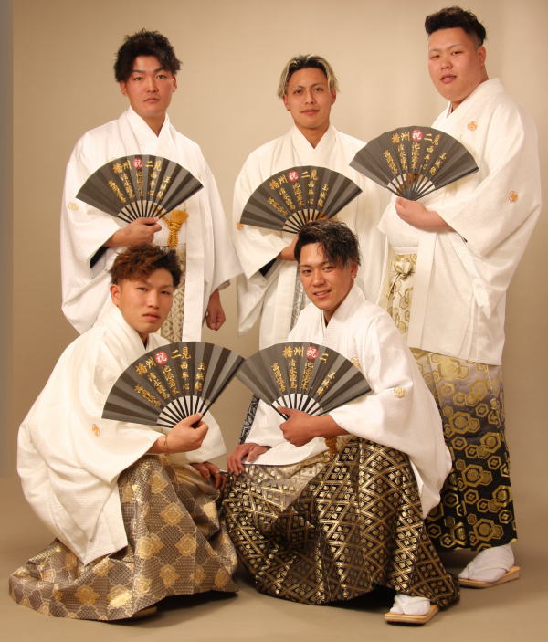 男物紋付羽織着物袴は、多くの色・柄を数多く揃えています。写真スタジオ完備。